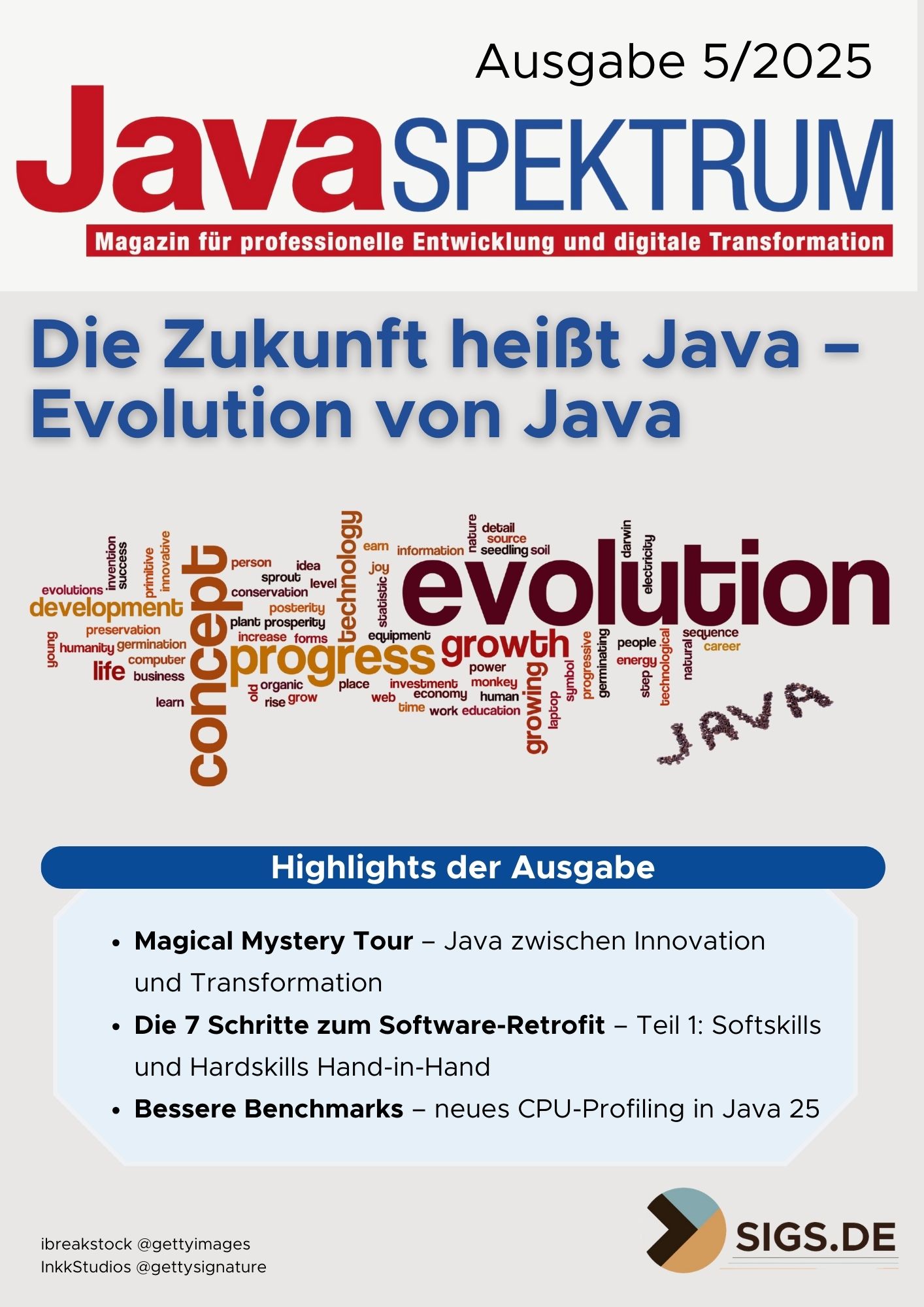 JavaSPEKTRUM ist das Praxismagazin für professionelle Softwarearchitekten und -entwickler, die mit der Java-Plattform arbeiten.